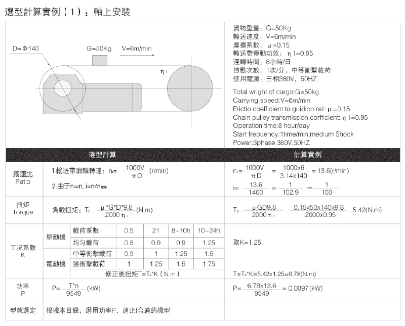 減速機選型,山藤減速機選型實例如下圖: